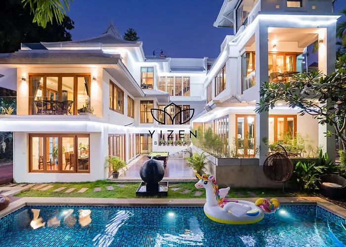 Yizen Beachfront Seaview Villa med 5 sovrum, som ligger inom 10 minuter med bil från Mini Siam Pattaya Thailand, erbjuder soldäck, solterrass och utomhuspool för gästerna. Villan med 5 badrum har en privat parkering och en solig uteplats med utsikt över poolen.